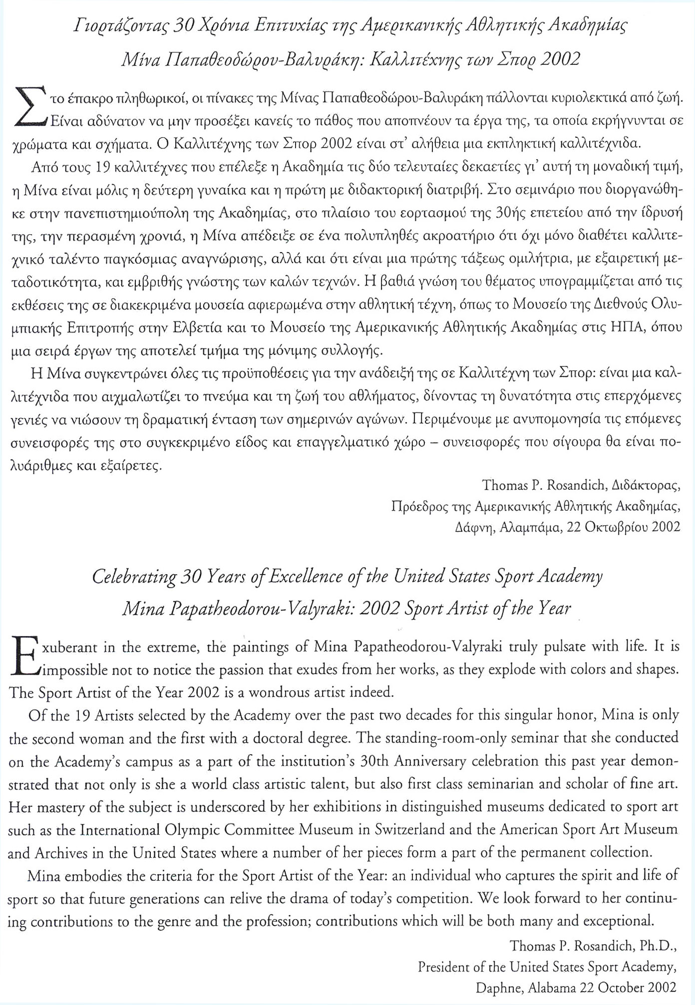 The Sport Artist of the Year 2002 is a wondrous artist indeed.