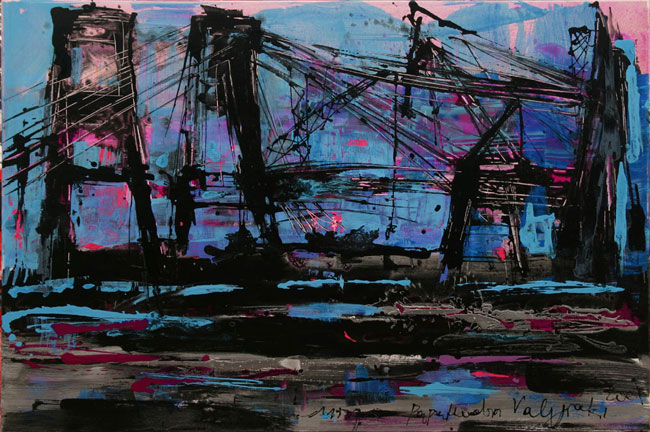 Cranes in violet aluminum