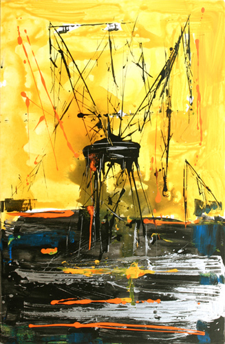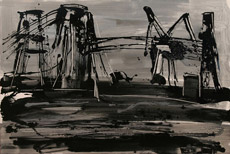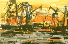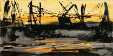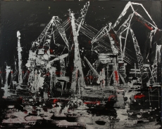 Cranes on Black Background