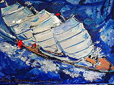 Το κόκκινο πλοίο σε γαλάζιο φόντο