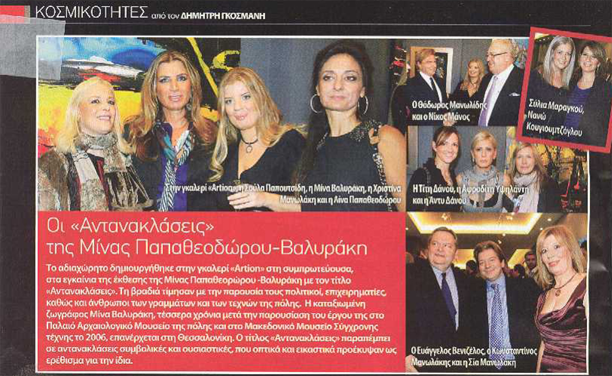 06.11.2010: | Οι αντανακλάσεις της Μίνας Παπαθεοδώρου-Βαλυράκη Από το περιοδικό TIVO. |